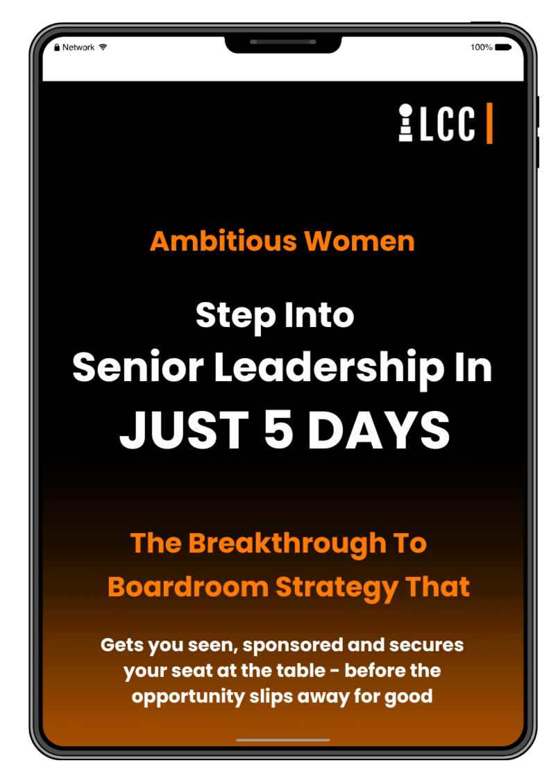 A FREE 5-day email course revealing the hidden habits that quietly stall your C-suite career, keeping high-achieving women stuck in middle management, overlooked by decision-makers & watching less-qualified colleagues accelerate faster to the boardroom.Learn How to Get Seen, Get Nominated & Finally Get Promoted - Before Your Time Runs Out.